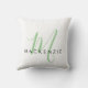 Elegant Modern White Green Script Monogram Throw Pillow