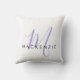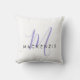 Elegant Modern White Lavender Script Monogram Throw Pillow