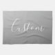 Elegant Modern White Script Writing Grey Gradient Kitchen Towel