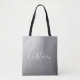 Elegant Modern White Script Writing Grey Gradient Tote Bag