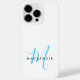 Elegant Modern White Sky Blue Script Monogram Case-Mate iPhone Case