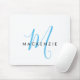 Elegant Modern White Sky Blue Script Monogram Mouse Pad