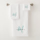 Elegant Modern White Teal Script Monogram Bath Towel Set