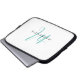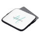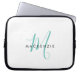 Elegant Modern White Teal Script Monogram laptop sleeve. An elegant teal script monogram combined with a clean black san-serif font makes for a contemporary look.