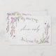 Pretty and delicate, this trendy wildflower wedding invitation RSVP reply card design features delicate hand painted watercolor florals in shades of purple, lilac and lavender, with hand lettered script typography on a faux hand made fine art paper texture. The back of the RSVP allows your invited guests to reply, and allows for four entree selections for plated meal service. Contact designer for matching products, and view entire wedding suite here: https://www.zazzle.com/collections/elegant_modern_wildflower_watercolor_art_paper-119612444411079619. Copyright Anastasia Surridge for Elegant Invites, all rights reserved.