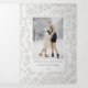 Elegant, chic and minimal monochrome design featuring single photo template, faux sculpted silver winter botanical pattern and editable text fields. Panels feature additional photo and text templates.