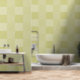The artwork features modern, minimalist design of yellow, green mist geometric tiled pattern.