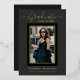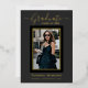 Magnifiquement élégante 1 carte faire-part de graduation photo. Avec texte moderne avec script de calligraphie dans votre choix d'or, d'argent ou de feuille rose. Votre photo est également légèrement bordée dans une double garniture en feuille. Le design est complété par un arrière - plan dans des tons de platine foncé, gris et noir. Le dos de la carte offre un espace de texte personnalisé pour ce diplômé spécial. Pour voir d'autres articles comme celui-ci, visitez mon magasin ici à "www.Zazzle.com/LakeViewCardCo". Merci