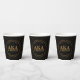 Impress clients or guests with disposable paper cups featuring a modern black background, gold trellis design, and dotted gold monogram—perfect for events and office gatherings.