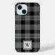 Elegant Monogram Black And White Plaid Pattern iPhone 15 Case.