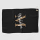 Elegant Monogram Black Gold Girly Script Name Golf Towel