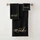 Personnalisez votre belle Elegant Monogram Black Gold Script Nom Ensemble de serviettes de bain! Si vous avez besoin d'aide, veuillez nous le faire savoir à belytaliarecipes@gmail.com, et nous vous aiderons volontiers.© Belytalia 2022