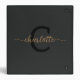 Elegant Monogram Black Gold Script Name Recipe Binder