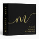 Elegant Monogram Black Gold Script Office School Binder