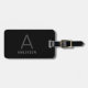Elegant and Professional Monogram Initial Name Custom Printed Luggage Tag in black, white, and grey looks classic and masculine on any black luggage, making your bag easy to identify without standing out in an obnoxious way so you always look classy, professional, and clean and put together.