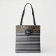 An elegant black leopard animal print and black and white striped monogram tote bag for everyday or back to school. Add your name and initial on the front and back. Designed for you by Blackberry Boulevard.