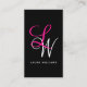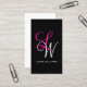 Elegant Monogram Black Pink Script Business Card