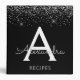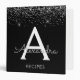 Silver and Black Faux Glitter and Sparkle Elegant Binder for Cooking Recipes. These Binders can be customized to include your initial and first name.