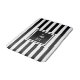 Elegant personalized initials monogram bath mat featuring a black and white striped pattern with your initials set in a black bordered square with a classic white text. Designed by Thisisnotme©
