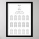 This design features the bride's and groom's names as the main focus of the design with a black, gray and white border. Personalized names using script font typography creates a perfect fusion of modern and elegance. A simple custom minimalist wedding seating chart design with modern, black, white and gray monogram. Matching wedding invitations and other stationery items are also available.