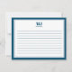 Elegant Monogram Blue Border Minimalist Personalized Stationery Ruled Note Card.
