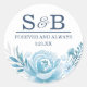 Elegant Monogram Blue Floral Wedding Classic Round Sticker
