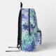 This backpack features a beautiful leaf pattern in blue, green, and purple tones. Personalize with your monogram initial and name which is elegantly displayed on the front pocket.