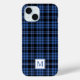 Elegant Monogram Blue Plaid iPhone 15 Case