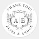 Elegant Vintage Leaf Monogram Initial Wedding Classic Round Sticker. Monogrammed initials framed by elegant hand illustrated vintage crest in black and white, simple and sophisticated style . Perfect choice for modern, classic, simple formal weddings. Kindly check out the matching pieces in the collection.