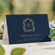 Elegant Monogram Crest Navy Blue Gold Graduation Thank You Card