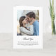 This folded wedding program features an elegant vintage monogram crest with classic script calligraphy on the front, with the order of ceremony and wedding party inside, and a photo of the happy couple and thank you note on the back.