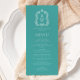Elegant Monogram Crest Turquoise White Wedding Menu