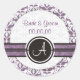 Elegant Monogram Damask Save The Date Wedding Stickers. Make a lasting impression with this Elegant Monogram Damask Save The Date Wedding Stickers . There is a stripe along the sticker and a circle with an elegant monogram on it. The beautiful lavender purple and white damask pattern background adds style and finesse. Designed by Olympia. Classic and sophisticated yet contemporary at the same time. Design available in several colours. Personalize it with your text. You can change text and use it as Thank You stickers or any other use you think.