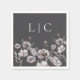 Elegant monogram dark grey watercolor flower napkin