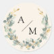 Elegant, monogram, eucalyptus wreath classic round sticker