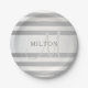 Elegant Monogram Faux Silver Gradient Grey Stripes Paper Plate