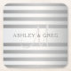 Elegant Monogram Faux Silver Gradient Grey Stripes Square Paper Coaster