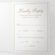 Traditional and classy all in one wedding invitation template with rsvp card and enclosure card attached, making this invitation suite convenient and budget friendly. The wedding invitation has your two initial monogram and your names in an elegant calligraphy inside of a thin border along with your favourite photo on the back. All text is faux gold and may be changed to any colour you wish in the design editing tool. The RSVP postcard has your mailing address on the back and your guests simply cut off and mail back to you. NOTE: First class postage is required for the RSVP postcard. Postcard stamps will not be enough postage due to the size. This classic design in faux gold is perfect for a formal wedding. All-in one invitations are convenient and budget friendly.