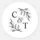 Elegant Monogram Greenery Leaves Wedding Classic Round Sticker