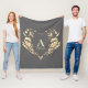 Modern, elegant, stylish grey fleece blanket with elegant gold foliage heart monogram.
