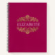 An elegant hot pink and gold notebook for your office or back to school. Add your name between the gold floral flourish on the front and an initial on the back. Designed for you by Blackberry Boulevard.