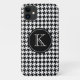 Classy monogram houndstooth pattern iPhone 6 case. Monogrammed cover with cute hounds tooth check design. Custom background colour or black and white. Stylish dogtooth print with name initial letter. ie K for Kate, Kelly, Karen, Kevin, etc. Elegant chic gift idea for Birthday or Christmas.