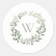 Elegant Monogram Initial Greenery Sage Foliage Classic Round Sticker