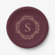 Elegant Monogram Initial Modern Classic Burgundy Paper Plate