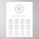 Elegant Monogram Insignia Wedding Seating Chart Poster. Elegant rose gray text on white with a single dusty blush colored initial monogram insignia at the top. Customize with Bride & Groom's Name, wedding date, and table numbers and guest names.