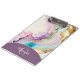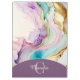 A feminine elegant liquid ink design in pink, purple, turquoise and gold. Personalized with monogram and name.