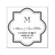 A personalized rubber stamp with a monogram, your names and address in elegant fonts inside a frame.