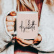 This modern monogram blush pink, black and gold mug is perfect for the trendsetter in your life. The elegant script font and sleek pink, black and gold design will make for a stylish, yet subtle statement. Personalize your mug with your name or initials for a unique and special touch. Whether you're enjoying your morning coffee or just catching up with friends, this timeless monogram mug is sure to be a conversation starter.