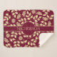 Elegant Monogram Name Leaf Daisy Pattern Burgundy Sherpa Blanket
