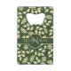 Elegant Monogram Name Leaf Daisy Pattern Green Credit Card Bottle Opener